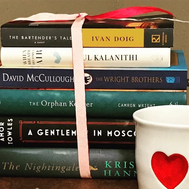 Wanna ride them too? Rae and I are sharing some of our favorite pages in a giveaway, including The Bartender’s Tale and a few other downright winners like A Gentleman in Moscow, When Breath Becomes Air, The Wright Brothers (audio version), The Orphan Keeper, and The Nightingale. Already read some or all of these gems? Be a hero and gift them to friends.